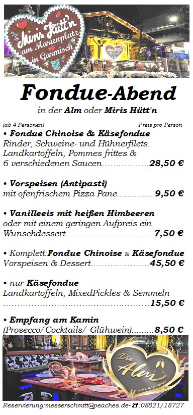 Du planst einen Geburtstag, eine Hochzeit oder eine Feier ? Wir planen deine individuelle Veranstaltung ganz nach deinen Wünschen. Zu besonderen Anlässen bieten wir auch Fondue oder bayerische Köstlichkeiten an.